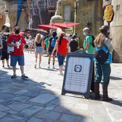 Keeping six feet away from others can be difficult enough in the parks, but as we have noted the long lines weaving in and out of walkways can make it near impossible. As capacity is increased the lines only become longer and more intrusive.